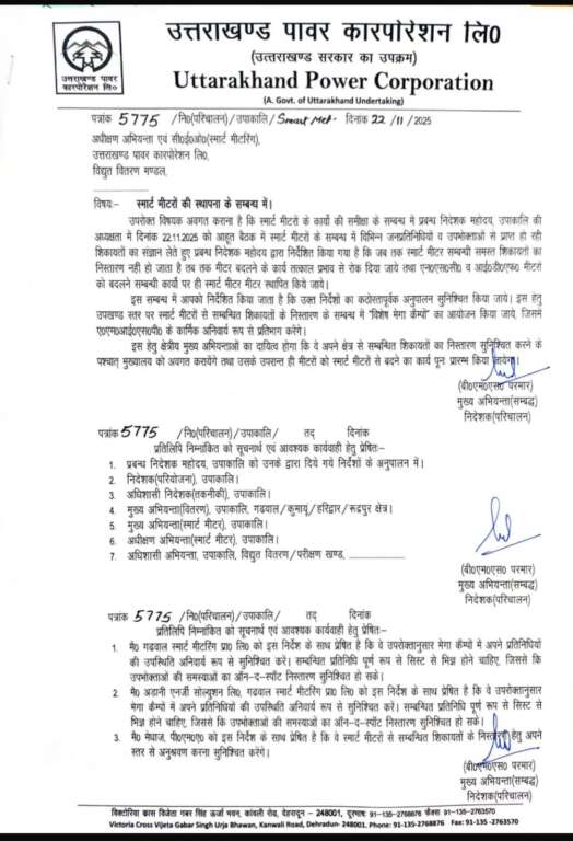 देहरादून: स्मार्ट मीटर बदलने पर रोक, UPCL ने जारी किए सख्त निर्देश