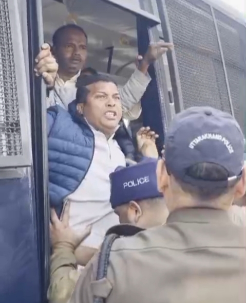 मुख्यमंत्री पुष्कर धामी के संभावित दौरे को देखते युवा काग्रेस कार्यकर्ता प्रदेश उपाध्यक्ष हेमन्त साहू के नेतृत्व में काले गुब्बारों के साथ जोरदार विरोध करते हुए अंकिता भण्डारी के दोषियों को फांसी की सजा देने सुखवंत सिंह हत्या कांड की सीबीआई जांच करवाने बढ़ती बेरोजगारी महंगाई पलायन नशे के करोबार का मुद्दा उठाया।कुसुमखेड़ा चौराहे पर कार्यकर्ताओं को गिरफ्तार करने में पुलिस को कड़ी मशक्कत करनी पड़ी इस दौरान कार्यकर्ताओं का गुस्सा सातवें आसमान में था युवा नेता हेमन्त साहू व दीपा खत्री ने कहा सरकार मोर्चे पर विफल है उधमसिंह नगर जनपद के किसान सुखवंत सिंह आत्महत्या मामले की निष्पक्ष एवं उच्च स्तरीय न्यायिक जांच हो और एसएसपी को तत्काल प्रभाव से हटाया जाए। साहू ने कहा राज्य में कानून व्यवस्था पूरी तरह समाप्त हो गई अपराध नशे का करोबार चरम सीमा पर पहुंच गया है छात्र नेता शोभित कुमार व सचिन राठौर ने कहा स्वास्थ्य व्यवस्था पूरी तरह चौपट होगई जिस वजह से निजी अस्पताल गरीबों को लूट रहे है  पुलिस ने कार्यकर्ताओं को 2बजे गिरफ्तार आरटीओ चौकी ले गई 5 बजे निजी मुचलके पर रिहा किया गिरफ्तार देने में वालों छात्र नेता शोभित कुमार तस्कीन अहमद सचिन राठौर मोनू चौहान आनंद कुमार विराज कुमार नील खत्री विशाल आर्या समेत तमाम लोग थे।