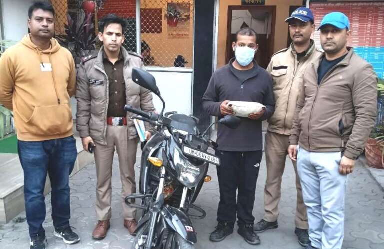 हल्द्वानी में ड्रग फ्री देवभूमि मिशन को सफल बनाने की दिशा में नैनीताल पुलिस ने नशे के खिलाफ बड़ी कार्रवाई करते हुए हल्द्वानी क्षेत्र से अवैध चरस की तस्करी में लिप्त एक अभियुक्त को गिरफ्तार किया है। मण्डी बाईपास रोड पर चैकिंग के दौरान पुलिस ने 750 ग्राम अवैध चरस के साथ एक तस्कर को दबोच लिया। आरोपी के पास से तस्करी में प्रयुक्त एक अपाचे मोटरसाइकिल भी बरामद की गई है।एसएसपी नैनीताल डॉ. मंजूनाथ टी.सी. के निर्देशन में जनपद भर में मादक पदार्थों की तस्करी पर रोक लगाने के लिए सघन चेकिंग अभियान चलाया जा रहा है। इसी क्रम में पुलिस अधीक्षक हल्द्वानी मनोज कुमार कत्याल एवं क्षेत्राधिकारी हल्द्वानी अमित कुमार के पर्यवेक्षण तथा कोतवाली हल्द्वानी के प्रभारी निरीक्षक विजय सिंह मेहता के नेतृत्व में पुलिस टीम ने यह कार्रवाई की।पुलिस के अनुसार, 18 जनवरी 2026 की सायं मण्डी बाईपास रोड हल्द्वानी पर चेकिंग के दौरान अभियुक्त गोपाल सिंह को संदिग्ध अवस्था में रोका गया। तलाशी लेने पर उसके पास से 750 ग्राम अवैध चरस बरामद हुई। साथ ही अभियुक्त के कब्जे से वाहन संख्या UK06AB2486 अपाचे मोटरसाइकिल भी जब्त की गई।गिरफ्तार अभियुक्त के विरुद्ध कोतवाली हल्द्वानी में एफआईआर संख्या 19/2026 धारा 8/20/60 एनडीपीएस एक्ट के अंतर्गत मुकदमा पंजीकृत कर वैधानिक कार्रवाई की जा रही है। पूछताछ में अभियुक्त ने बताया कि वह गांव-गांव से चरस इकट्ठा करता है और अधिक मात्रा होने पर उसे बेचने के लिए शहर में लाता है गिरफ्तार अभियुक्त की पहचान गोपाल सिंह पुत्र स्वर्गीय किशन सिंह निवासी ग्राम सुनकिया भटेलिया, थाना मुक्तेश्वर, जिला नैनीताल के रूप में हुई है। पुलिस अब यह भी पता लगाने में जुटी है कि इस तस्करी नेटवर्क में और कौन-कौन लोग शामिल हैं।इस कार्रवाई को अंजाम देने वाली पुलिस टीम में उप निरीक्षक मनोज कुमार (चौकी टीपी नगर, कोतवाली हल्द्वानी), कांस्टेबल तारा सिंह (चौकी टीपी नगर), कांस्टेबल संतोष विष्ट (एसओजी) और कांस्टेबल भूपेंद्र जेष्ठा (एसओजी) शामिल रहे। नैनीताल पुलिस ने साफ किया है कि नशे के सौदागरों के खिलाफ अभियान आगे भी लगातार जारी रहेगा।